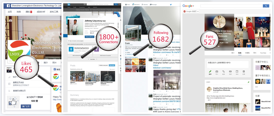 在這個社交化(SNS)流行的年代里,無論是對于企業(yè)商家而言,還是對于個人,都可以借助社交化的元素(Facebook Twitter Linked in YouTube Pinterest Google+等)讓自己的品牌、商品、服務(wù)、名聲等得到最大程度的推廣。